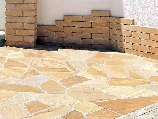 オークルストーン パールイエローは、大きな色幅が特徴で、天然石特有のナチュラルな印象を与えます。